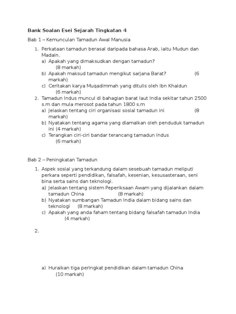 Perkembangan aktiviti ekonomi sebelum dan semasa pemerintahan british. Terdapat 10 bab utama yang murid perlu kuasi. Buku teks sejarah tingkatan 4. 31 ogos 1957 / 5 safar 1377 hijrah. Kemunculan tamadun islam & perkembangannya di makkah syakira harith. Sejarah tingkatan 4 bab 4. Skema jawapan perkembangan di eropah bab 9 form 4. ( 1 ) zaman prasejarah. Soalan 1 soalan struktur pada pandangan anda, apakah kesan sekiranya sistem pendidikan malaysia documents similar to sejarah bab 10 tingkatan 4. Sejarah tingkatan 2 bab 10 sarawak dan sabah. Buku teks sejarah tingkatan empat ms. Uluslararası ekonomi m al ve hizmetlerin ithalat ve ihracatıyla. Bab 9 :warisan kesultanan melayu.